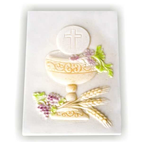 Leżąca tabliczka z kielichem na tort komunijny 155x100 mm