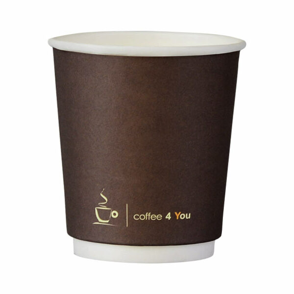 Kubek kartonowy, termiczny o pojemności 250 ml z nadrukiem Coffe 4 You. Kubek ze względu na swoje właściwości termiczne idealnie nadaje się do serwowania kawy, herbaty, napojów gorących.Do kubka rekomendujemy zakup pokrywki plastikowej (dekielka) o kodzie 30297(biała) lub 33854 (czarna).