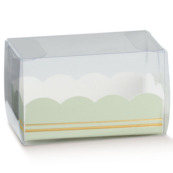 Pudełko na 2-3 makaroniki przeźroczysto-zielone 8x5x5 cm opak.10 szt.