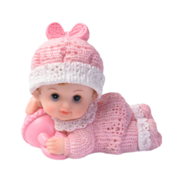 Figurka na tort firmy MODECOR 26010B. Dekoracja przedstawia leżącą dziewczynkę, wysokość figurki ok. 7 cm. Dekoracja będzie idealnym zwieńczeniem tortu na chrzest oraz innych uroczystości. Figurka została wykonana z wysokogatunkowego tworzywa, dzięki czemu jest trwała. Dekoracja może zostać wykorzystana jako pamiątka.