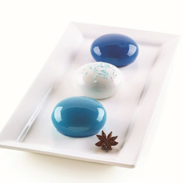 Silikonowa forma do pieczenia w oryginalnym kształcie o średnicy 68 mm, wysokości 33 mm w kolorze szarym. 6 gniazd na formie, każde gniazdo o pojemności 88 ml. Profesjonalna forma włoskiej produkcji jest w 100% bezpieczna w kontakcie z żywnością. Ma wszechstronne zastosowanie do produkcji lodów, wyrobów cukierniczych oraz w restauracjach i kawiarniach. Wytrzymała na temperaturę od -60 °C do + 230 °C.Numer produktu Silikomart: 26.234.13.0065