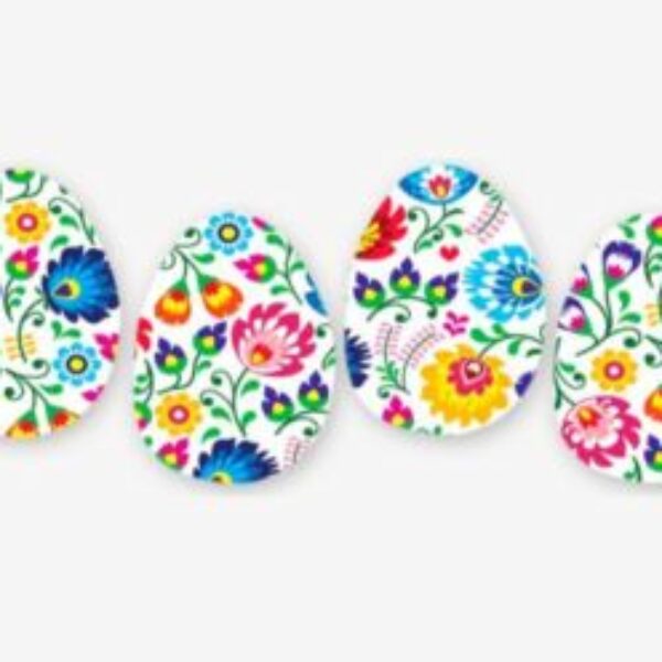 Dekoracja opłatkowa producenta DAISY DECOR 720320 w kształcie jajek z nadrukiem wzorów ludowych. Świetnie sprawdzi się do ozdoby świątecznych wypieków w postaci ciast, ciastek, babeczek i tortów oraz deserów.