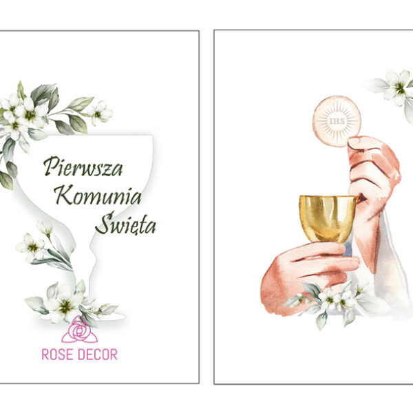 Opłatek na tort komunijny kielich w białych kwiatach A3 720472