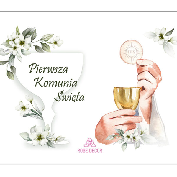 Opłatek na tort komunijny kielich w białych kwiatach A4 720471
