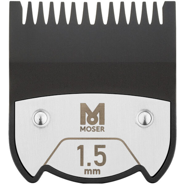Nasadka magnetyczna do maszynki do strzyżenia Moser. Długość cięcia 1.5mm. Idealnie dopasowuje się do ostrza dzięki systemowi MAGCLICK. Zaokrąglone krawędzie nasadki zapewniają brak podrażnień sk