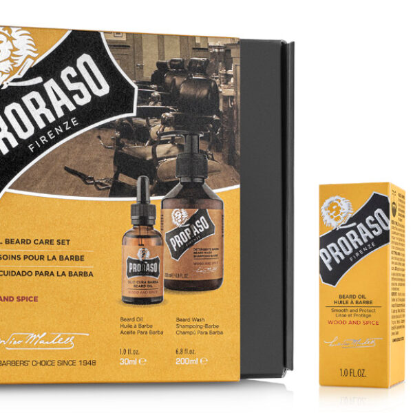 Proraso, zestaw: olejek + szampon do brody, Wood&Spice, 200ml + 30ml