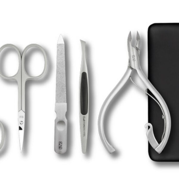 Kompaktowy zestaw do pielęgnacji paznokci zawiera wysokiej klasy narzędzia ze stali nierdzewnej, w etui. Zestaw do pielęgnacji paznokci KAI Beauty Care