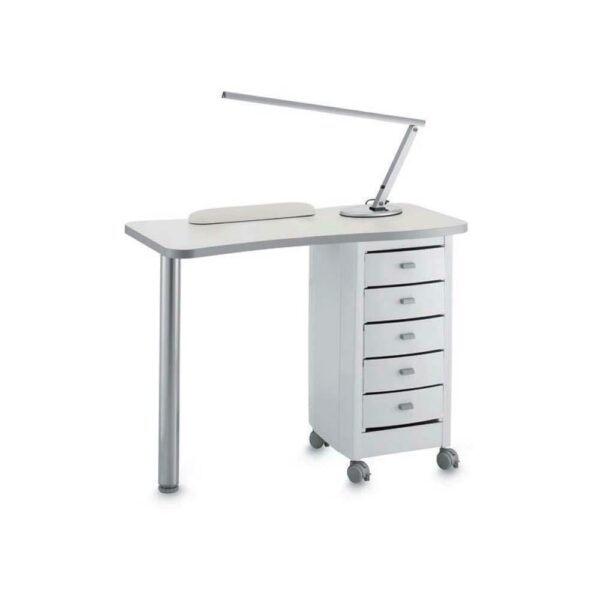 Klasyczny stolik do manicure Panda 224, dostępny w wersji z pochłaniaczem pyłu lub bez. W zestawie znajdują się pufka pod dłoń oraz lampka. Wymiary: wysokość: 74 cm szerokość: 98 cm głębokość: 48 cm