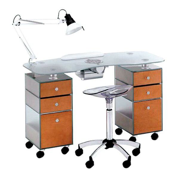 Doskonały do każdego salonu kosmetycznego! Stolik do manicure Panda 187 to stylowy dodatek do każdego salonu kosmetycznego. Zapewnia komfort dla kosmetyczki i klienta. Stylowe biurko do manicure Panda 187 prezentuje najnowsze i najlepsze trendy włoskiego designu. W zestawie z biurkiem znajdują się pochłaniacz pyłu, lampa na biurko, stojak na lakiery i wygodna pufka pod dłoń dla klientki. Taboret