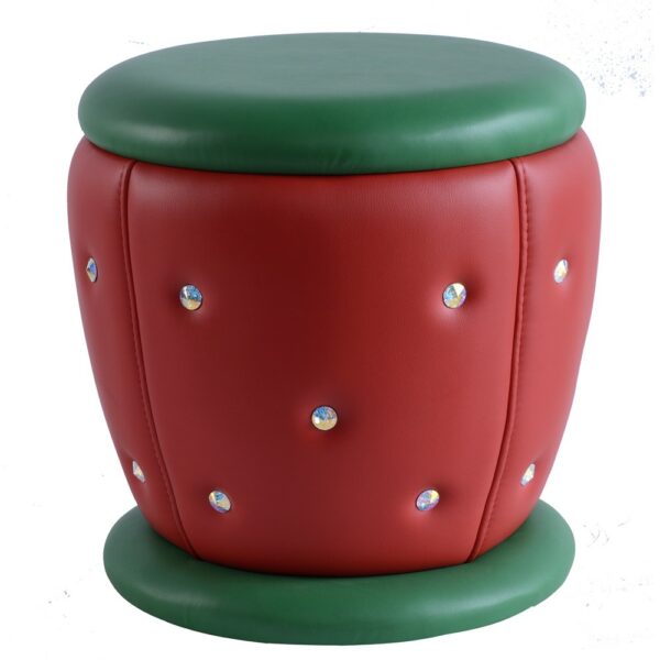 Kolejna wariacja nt. truskawki. Projekt odwzorowuje naturalny kształt i kolory tego pysznego owocu. Całość tapicerowana skajami w kolorze czerwonym i zielonym.