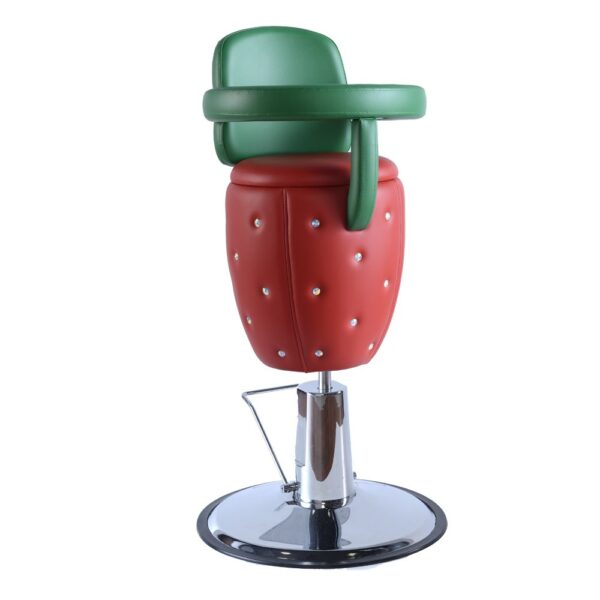 FRUIT – śliczny mebel dziecięcy w formie truskawki, będący fotelem fryzjerskim dla najmłodszych. Projekt odwzorowuje naturalny kształt i kolory tego pysznego owocu. Wykończenie oparcia przyjemnym miękkim skajem.