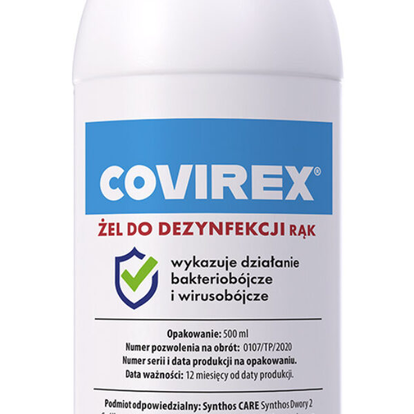 Żel do dezynfekcji COVIREX® o działaniu bakteriobójczym i wirusobójczym potwierdzonym rejestracją w URPL. Zawiera też składniki pielęgnacyjne. Antywirusowy żel do dezynfekcji rąk Covirex likwiduje bakterie i wirusy. Produkt posiada potwierdzoną rejestrację w Urzędzie Rejestracji Produkt