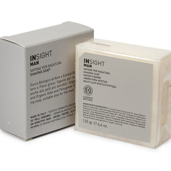 Mydło do golenia Insight Man posiada certyfikat cosmos Natural, co oznacza, że produkt w dużej mierze składa się z substancji pochodzenia naturalnego, zgodnie z informacjami podanymi na etykiecie produktu końcowego. W składzie aloes, kozieradka i daktyle. Mydło do golenia InSight Man jest idealne do codziennego stosowania. W składzie znandują się naturalne składniki, kt