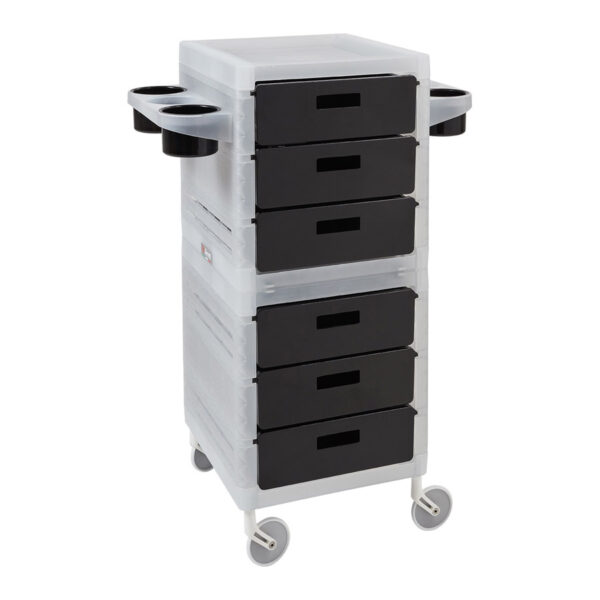 Doskonały pomocnik do Twojego salonu fryzjerskiego Ayala My. Wózek ten posiada aż 6 szuflad, 2 uchwyty na suszarkę, 4 kubki oraz wygodne kółka. W