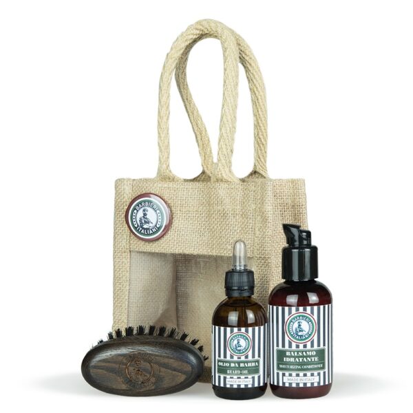 Torba Barbieri Italiani zawiera kartacz do brody, szampon do jej umycia i olejek, który zdyscyplinuje włoski. Przygotowaliśmy oryginalny prezent dla brodacza. Zestaw kosmetyk