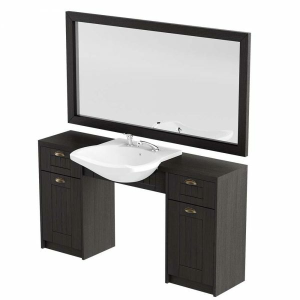 Jednostanowiskowa konsoleta barberska Panda ma szerokość 150 cm i wysokość 80 cm. Konsoleta fryzjerska Panda Barber Retro posiada miejsce na jedno stanowisko. Mebel posiada r