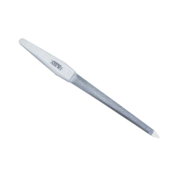 Metalowy pilniczek do paznokci firmy Dusy. Gryf pilniczka jest specjalnie profilowany, ergonomiczny dla lepszego i dokładniejszego profilowania płytki. Uchwyt z wgłębieniem ułatwiającym odsuwanie sk