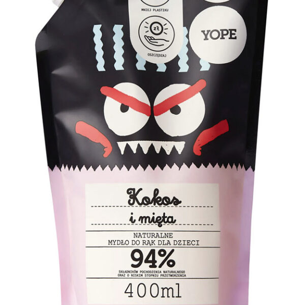 Yope, mydło dla dzieci, Kokos i mięta, 400ml, refill