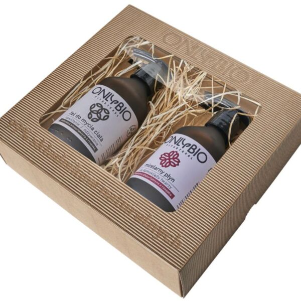 OnlyBio, zestaw upominkowy - żel do mycia ciała, nawilżanie i odżywianie + płyn micelarny do demakijażu, 2x250ml