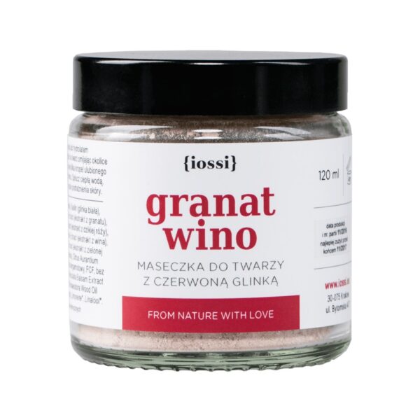 Maseczka Iossi to produkt w 100% naturalny. Przeznaczony do pielęgnacji cery dojrzałej, zwiotczałej, potrzebującej regeneracji. Maseczka do twarzy Iossi Granat i Wino z czerwoną glinką dedykowana jest pielęgnacji sk
