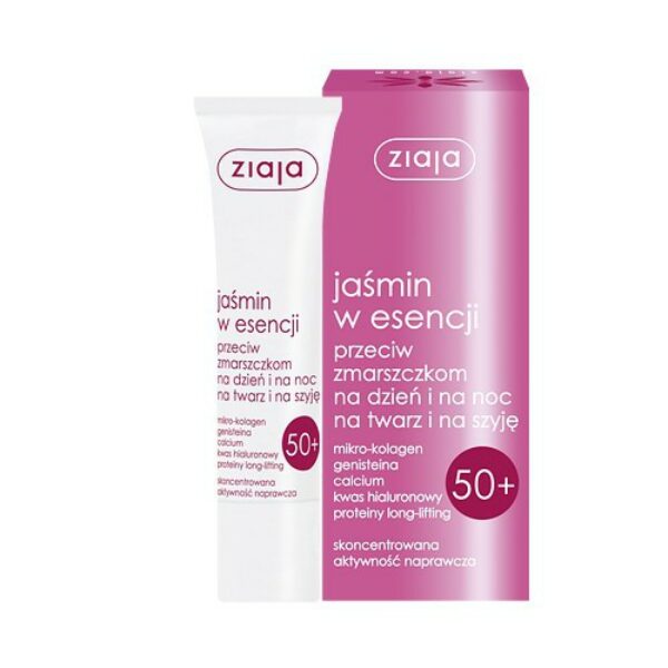 Poznaj niesamowite właściwości esencji przeciwzmarszczkowej Ziaja Jaśmin, która znacznie poprawia napięcie skóry oraz zmniejsza jej szorstkość. Wygładza zmarszczki, nawilża oraz zachwyca przyjemnym zapachem. Dla skór 50+. Esencja przeciw zmarszczkom