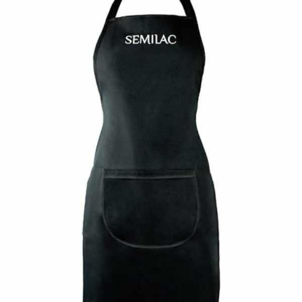 Semilac, czarny fartuszek z białym logo