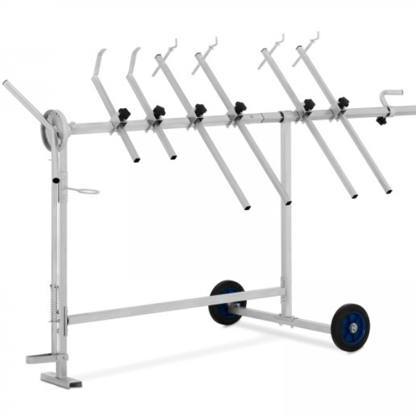 Stojak lakierniczy obrotowy ECO.Praktyczny i wygodny w obsłudze mechanizm obrotu sterowany pedałem dający możliwość ustawienia obrabianych lub lakierowanych elementów pod dowolnym kątem. Długość belki nośnej: 120 cm Wysokość: 100 cm Szerokość podstawy: 80 cm Ramię mocujące długie: 4 szt. Ramię mocujące krótkie: 2 sztuki Przedłużka 1 sztuka Masa brutto: 25 kg Pakowanie kartonowe o wym. 120 x 20 x23 cm