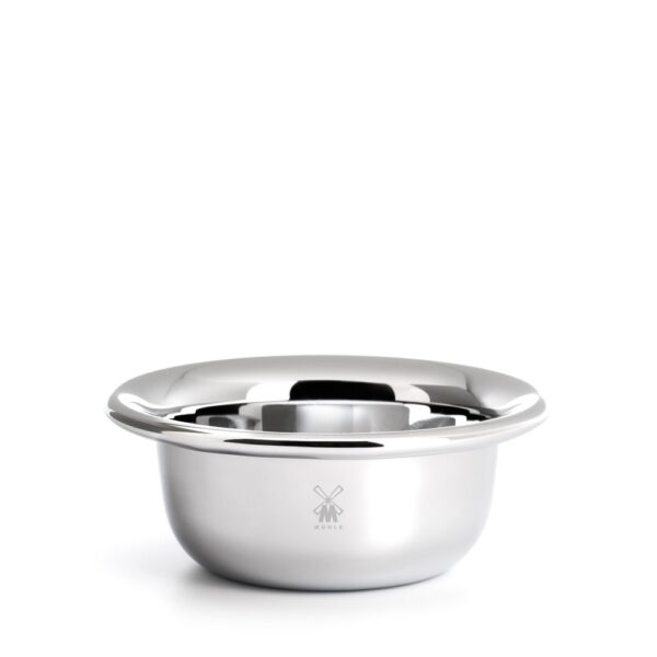 Elegancka, chromowana miska do golenia ze stali nierdzewnej marki Mühle.Rozmiary: ø 8,5 cm, wysokość 3,5 cm