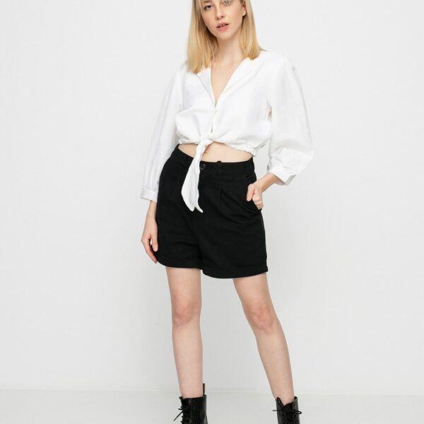 Materiał: 98% bawełna, 2% elastan • Krój z wysokim stanem • Stylowe podwinięcie na dole • Z tyłu kieszenie