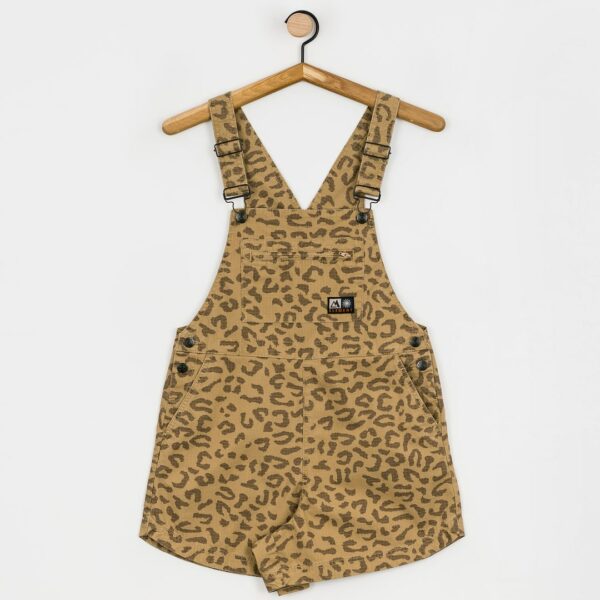 Materiał: 95% bawełna, 5% elastan • Nadruk w cętki • Klasyczny fason ogrodniczek • Regulowane szelki z klamrą • Naszywka z logo z przodu • Funkcjonalne kieszenie • Guziki po bokach • Luźny krój