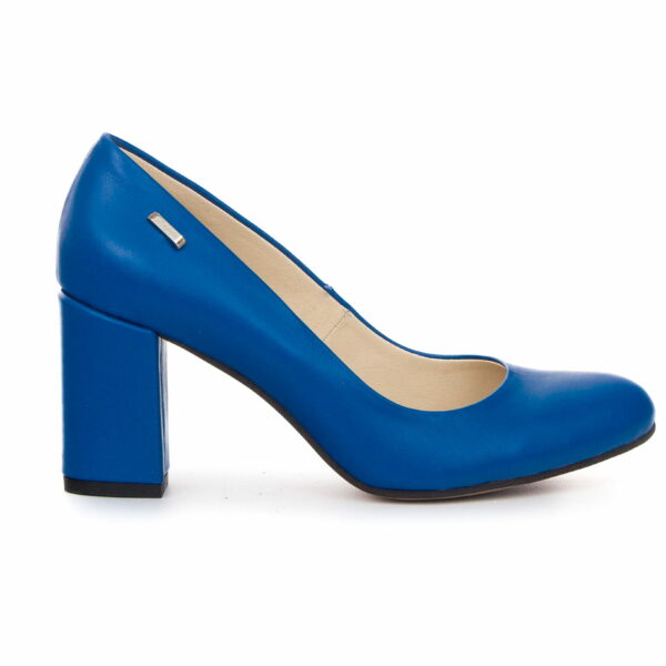 ślubne czółenka na słupku - skóra naturalna - model 042 - kolor niebieski lico