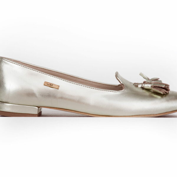 złote balerinki ślubne - skóra naturalna - model 045 - kolor złoty