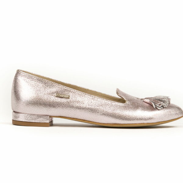 metaliczne baleriny na wesele - skóra naturalna - model 045 - kolor srebrny róż
