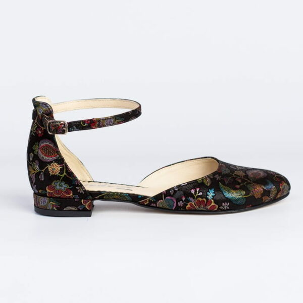 balerinki z paskiem na kostce - skóra naturalna - model 041 - kolor czarne liście