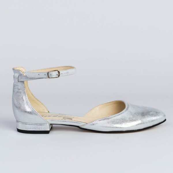 balerinki z paskiem na kostce - skóra naturalna - model 041 - kolor srebrny przecierka