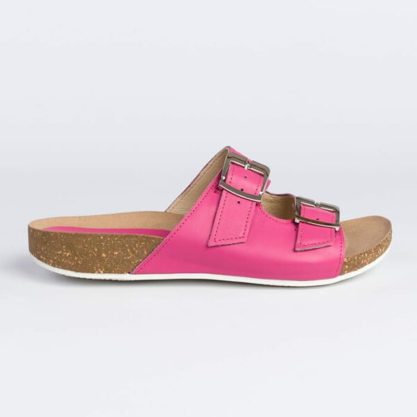 klapki na korkowej podeszwie - skóra naturalna - model 340 - kolor różowy lico