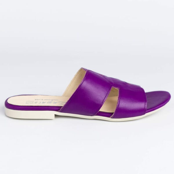damskie klapki na miękkiej podeszwie - skóra naturalna - model 371 - kolor fioletowy lico