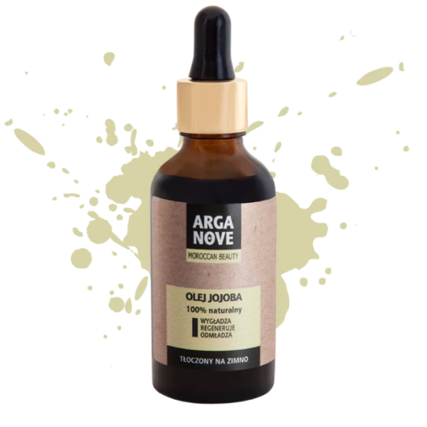 ArgaNove Organiczny Olej Jojoba 50ML Nierafinowany zimnotłoczony olej jojoba to bogate źródło witaminy E, fitosteroli, nienasyconych kwasów tłuszczowych i skwalenu. Ma wysoką zgodność biologiczną ze skórą. Zawiera naturalny filtr UV chroniący przed promieniami słonecznymi. Olej jojoba Arganove nie zawiera sztucznych barwników, konserwantów ani perfum. Charakteryzuje się delikatnym zapachem i jasno żółtym kolorem. Po otwarciu należy przechowywać w lodówce. Szklana butelka zakończona jest pipetą, która ułatwia aplikację produktu.Poprawia jędrność i elastyczność skóryRegeneruje skórę, ułatwia gojenie blizn potrądzikowych i ranSkutecznie odżywia i wygładza skóręPomaga zachować odpowiedni poziom nawilżenia skóry i włosówReguluje wydzielanie sebumZapobiega powstawaniu niedoskonałościUjędrnia i wyrównuje koloryt skóryPrzyspiesza regeneracje naskórkaNadaje włosom naturalny połyskSprawia, że stają się miękkie i gładkieWzmacnia rzęsy i paznokcie