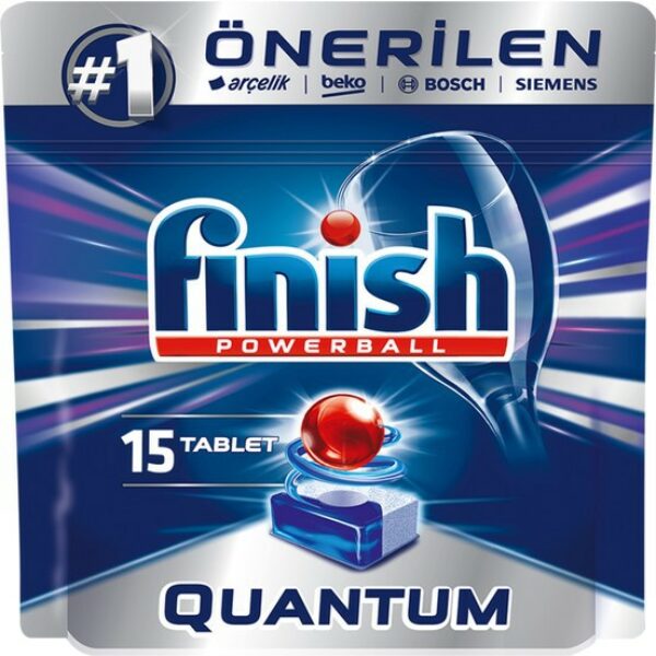 Finish Quantum PowerBall Tabletki Do Zmywarki 15 SztukŻelowe tabletki do zmywarki Finish Quantum w samorozpuszczalnej folii działają aż w 12 obszarach. Eliminują nawet przypalone i zaschnięte zabrudzenia już za pierwszym razem. Dodatkowo usuwają uporczywe plamy np. z herbaty czy tłuszczu. Tabletki Finish Quantum mają funkcję soli i nabłyszczacza. Ponadto chronią filtry zmywarki oraz szkło i srebro. Zapobiegają osiadaniu wapiennego nalotu na naczyniach. Udoskonalona formuła Powerball zapewnia doskonały połysk i skuteczne czyszczenie. Produkt działa nawet w niskich temperaturach.samorozpuszczalna foliaformuła Powerballfunkcja soli i nabłyszczaczausuwanie tłuszczuochrona filtrów, szkła i srebraochrona przed osadami z kamieniaolśniewający połyskświeży zapachMulti funkcyjna tabletka:Powerball – wytwarza musujące bąbelki, które rozprowadzają głęboko czyszczące enzymy wszędzie tam, gdzie są potrzebne.Biały proszek zawiera aktywne substancje odpowiedzialne za usuwanie barwnych zabrudzeń (np. osady z kawy, herbaty, wina) i skuteczne czyszczenie zaschniętych plam, dzięki niemu naczynia nie wymagają wstępnego namaczania.Żel pomaga rozpuszczać i usuwać tłuste zabrudzenia, chroni przed powstawaniem zacieków i zapewnia naczyniom połysk.Sposób użycia: Tabletki pokryte są folią, która samoistnie się rozpuszcza podczas zmywania. Dlatego trzymaj je zawsze tylko suchymi dłońmi. Dla najlepszych rezultatów do każdego zmywania, bez względu na rodzaj zabrudzenia, dla wszystkich twardości wody, umieść jedną tabletkę w suchym dozowniku. Nie zdejmuj folii z tabletki. Jeśli nastawisz krótki program zmywania, połóż Quantum na dnie urządzenia. Pamiętaj, by po użyciu zamknąć torbę z pozostałymi tabletkami. Chroń produkty przed wysokimi temperaturami i wilgocią.