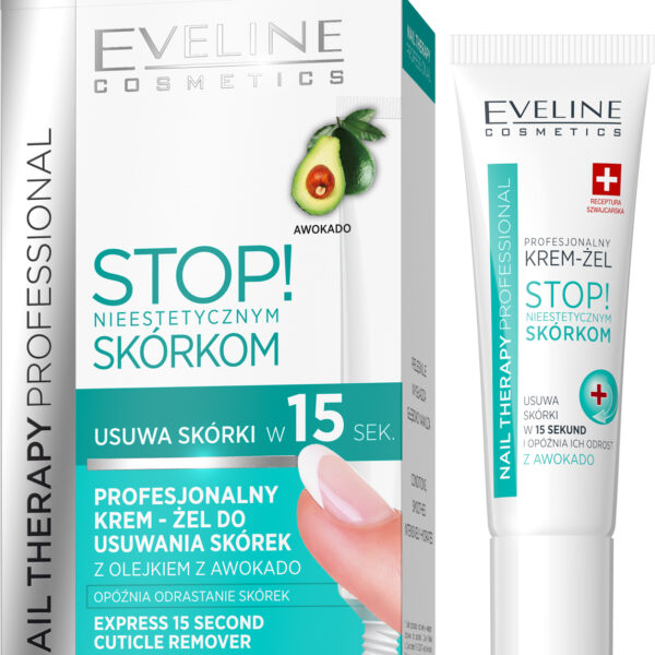 Eveline Nail Therapy Odżywka do Skórek:odżywka z serii Nail Therapy Professional produkt przeznaczony do pielęgnacji skórekpreparat wspomaga usuwanie skóręk wokół paznokciodżywka wygładza, pielęgnuje i intensywnie nawilżapreparat zawiera olej z avocadoPojemność: 12mlStosowanie: Nałóż żel na skórki i pozostaw przez 30 sekund, następnie delikatnie odepchnij je za pomocą drewnianego patyczka. Po zabiegu umyj dokładnie ręce. Dla podtrzymania efektu zabieg powtarzaj raz w tygodniu.