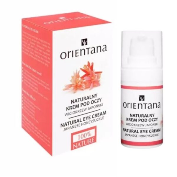 Orientana Rozświetlająco-Ultranawilżający Krem pod OczyNaturalny krem pod oczy na bazie składników pochodzenia roślinnego z zawartością ekstraktu z Wiciokrzewu Japońskiego.Produkt zawiera w swojej formule - mikę, kwas hialuronowy, olej awokado i bhringraj.Krem dedykowany skórze z pierwszymi oznakami starzenia się i utraty jędrności.Produkt rozświetla spojrzenie, nawilża i wygładza delikatną skórę wokół oczu. Krem spowalnia proces starzenia się i rozjaśnia skórę.Pojemność: 15mlSposób użycia: Niewielką ilość kremu nałożyć na skórę okolic oczu i delikatnie wklepać. Stosować rano i wieczorem. Doskonały pod makijaż.