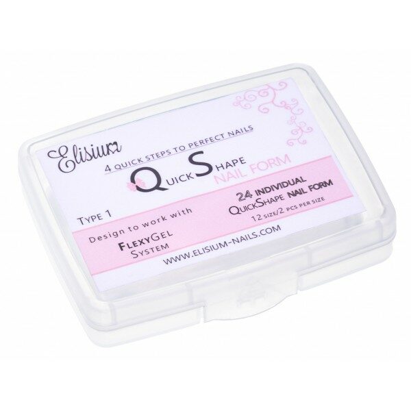 Elisium Formy do Przedłużania Quick Shape Mini 1Formy stworzone z myślą o nowoczesnej technice przedłużania paznokci. Stworzone do pracy z FlexyGelem. Wyraźna krzywa C pozwala w sposób estetyczny przedłużyć płytkę paznokci i uzyskać idealną linię. Formy wielokrotnego użytku. Opakowanie zawiera 24 sztuki form w 12 rozmiarach. Wersja: Mini 1