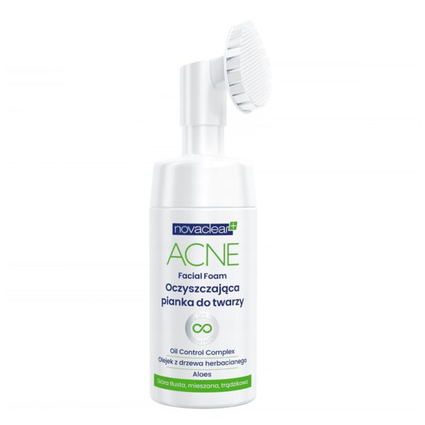 Novaclear Oczyszczająca Pianka do Twarzy 100mlOczyszczająca pianka przeznaczona do codziennej pielęgnacji skóry twarzy. Kosmetyk w swoim składzie zawiera olejek z drzewa herbacianego oraz nawilżający aloes. Dedykowany jest do skóry tłustej, mieszanej oraz trądzikowej. Produkt zawiera wygodną w użytkowaniu szczoteczkę, która pozwala dogłębnie oczyścić cerę. Pojemność: 100ml
