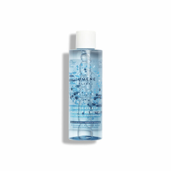 LUMENE Herkka Soothing Delikatny Płyn do Demakijażu Oczu i Ust 100mlProdukt, oparty na najczystszej na świecie wodzie arktycznej oraz bogatym w antyoksydanty ekstrakcie z owoców arktycznej czarnej jagody, pielęgnuje skórę podczas demakijażu. Płyn jest beztłuszczowy i bezzapachowy. Produkt dokładnie usuwa makijaż oczu, ust i twarzy. Idealny do cery wrażliwej. Nie zawiera parabenów, SLS, pochodnych formaldehydu, oleju mineralnego. Produkt jest w 100% wegański, a jego formuła oparta jest w 97% na składnikach pochodzenia naturalnego.Pojemność: 100ml Data ważności: 12m od momentu otwarciaSposób użycia: Nasącz wacik płynem i przyłóż na chwilę do zamkniętego oka. Delikatnie zmyj makijaż. W taki sam sposób usuń makijaż twarzy i ust.