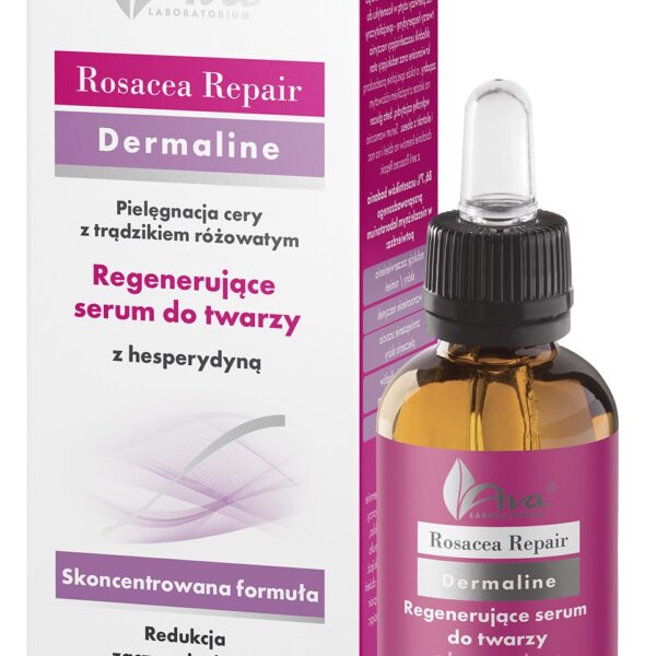 AVA Rosacea Repair Regenerujące Serum do Twarzy z HesperydynąSerum dedykowane do pielęgnacji cery z trądzikiem różowatym oraz cery naczynkowej.Formuła produktu posiada wysoką zawartość aktywnych składników: wąkrotkę azjatycką, beta glucan i ekstrakt z aloesu.Produkt został wzbogacony o hesperydynę - antyoksydant o właściwościach wzmacniających napięcie ścian naczynek krwionośnych oraz niwelujący stany zapalne.Serum pomaga zwalczyć pierwsze objawy trądziku różowatego, redukuje zaczerwieniania i widoczne naczynia włosowate.Pojemność: 30mlPrzydatność: 6 miesięcy od otwarciaSposób użycia: Stosować codziennie rano na oczyszczoną skórę twarzy, pozostawić do wchłonięcia. produkt stanowi doskonała bazę pod makijaż. W celu wzmocnienia efektów kuracji zaleca się stosowanie serum pod krem na dzień lub noc z serii Rosacea Repair