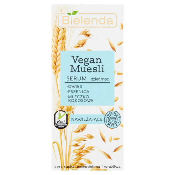 Bielenda Vegan Muesli Serum do Twarzy Nawilżające 30mlBielenda Began Muesli to seria wegańskich kosmetyków, które przeznaczone są do pielęgnacji skory twarzy oraz całego ciała. Seria zawiera zarówno produkty matujące, stworzone na bazie mleczka ryżowego, jak również odżywcze oraz nawilżające, które powstały w oparciu o mleczko kokosowe. Wyjątkowy design i wielość kosmetyków tej serii sprawia, że każdy jest w stanie dobrać odpowiedni produkt do swoich potrzeb i preferencji.Serum do twarzy posiada właściwości nawilżające i odżywcze. Idealnie sprawdzi się w przypadku posiadania skóry suchej, odwodnionej i wrażliwej. W jego składzie znaleźć można między innymi: owiec, pszenicę, mleczko kokosowe. Może być aplikowany podczas porannej oraz wieczornej pielęgnacji. Pojemność: 30ml