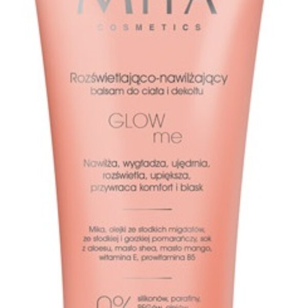 MIYA GLOWme Rozświetlająco-Nawilżający Balsam do Ciała i DekoltuBalsam do ciała o wyjątkowych właściwościach nawilżających i rozświetlających.Produkt stworzony na bazie naturalnych składników (ponad 96%).W formule balsamu znajdziemy złotą mikę, masło mango i shea, olej ze słodkich migdałów i pomarańczy, witaminę E.Złota mika przepięknie rozświetla skórę - pozostawiając na niej złoty, promienny blask.Balsam szybko się wchłania, nie pozostawia tłustej warstwy. Regularne stosowanie zapewnia skórze optymalne nawilżenie.Pojemność: 200mlProdukt wegański i nie testowany na zwierzętach.