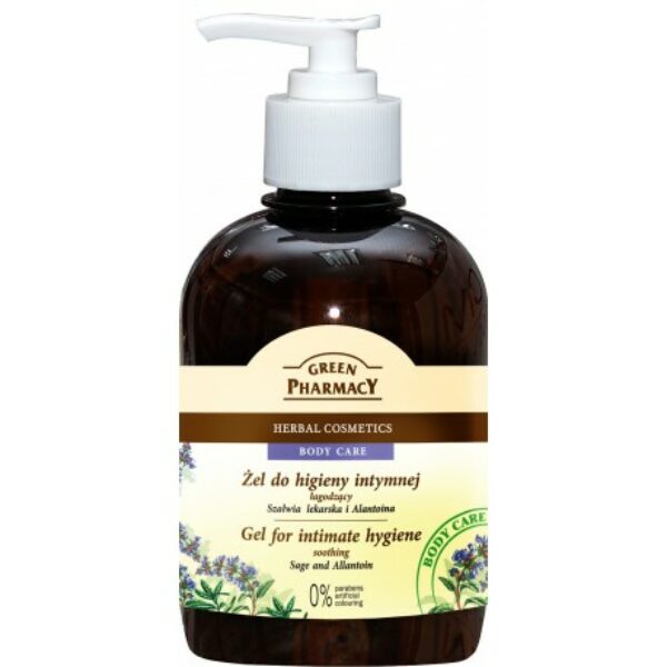 Green Pharmacy Żel do Higieny Intymnej Szałwia Lekarska i Alantoina 370ml Produkt delikatnie pielęgnuje okolice intymne, myje oraz nawilża. Daje uczucie komfortu i świeżości.Odczyn pH płynu jest zgodny z naturalnym pH okolic intymnych.Produkt chroni przed podrażnieniami.Zawiera ekstrakt z szałwii lekarskiej i alantoinę, które łagodzą podrażnienia i przyśpieszają gojenie ran.Pojemność: 370ml