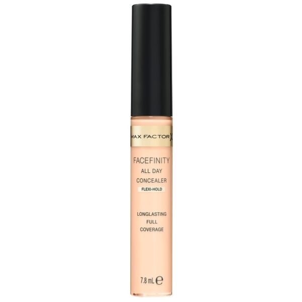 Max Factor Facefinity All Day Korektor 020Korektor dedykowany zarówno pod oczy, jak i na niedoskonałości na twarzy. W jego formule zastosowano technologię Flexi-hold, dzięki czemu posiada bardzo dobry stopień krycia. Z powodzeniem zakrywa wszelkie niedoskonałości i zmiany pigmentacyjne. Dodatkowo, posiada lekką konsystencję, która nie obciąża nadmiernie cery. Stopień krycia korektora można z powodzeniem budować - od średniego do pełnego. Pojemność: 7.8mlPrzydatność: 24 miesiące od daty otworzenia produktu