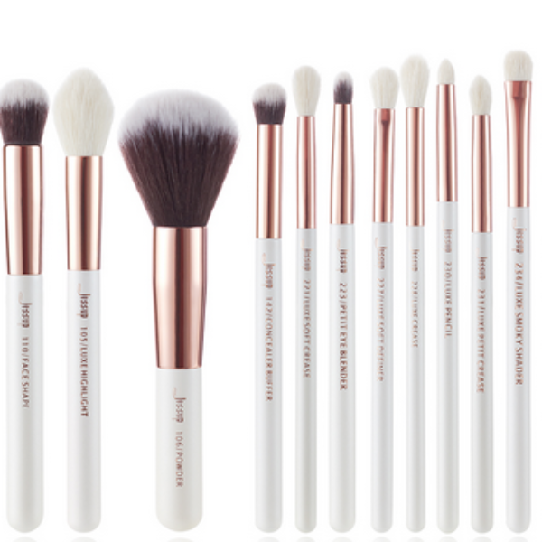 Jessup Zestaw 15 Pędzli do Makijażu T222 White/Rose Gold Zestaw pędzli sprawdzi się w wykonywaniu makijażu twarzy i oczu.Pędzle posiadają dwukolorowe, syntetyczne, miękkie i delikatne włosie.Pomalowane na biało drewniane trzonki idealnie komponują się ze skuwkami w odcieniu złota.W zestawie znajdziemy następujące pędzle:1. 101 Face Definer - pędzel do pudru, bronzera, do konturowania 2. 105 Luxe Highlight - pędzel do konturowania bronzerem, do rozświetlacza3. 106 Powder - pędzel do pudru4. 110 Face Shape - pędzel do aplikacji kosmetyków kremowych i sypkich do konturowania5. 142 Concealer Buffer - pędzel do aplikacji korektora, bazy pod cienie6. 221 Luxe Soft Crease - pędzel do cieni7. 223 Petit Eye Blender - pędzel do blendowania cieni8. 227 Luxe Soft Definer - pędzel do cieni9. 228 Luxe Crease - pędzel do cieni10. 230 Luxe Pencil - pędzel do cieni11. 231 Luxe Petit Crease - pędzel do cieni12. 234 Luxe Smoky Shader - pędzel do cieni13. 312 Detail Liner - pędzel do eyelinera14. 317 Wing Liner - pędzel do eyelinera15. 322 Brow Line - pędzel do brwiZestaw będzie wspaniałą ozdobą toaletki i świetnym pomysłem na prezent!